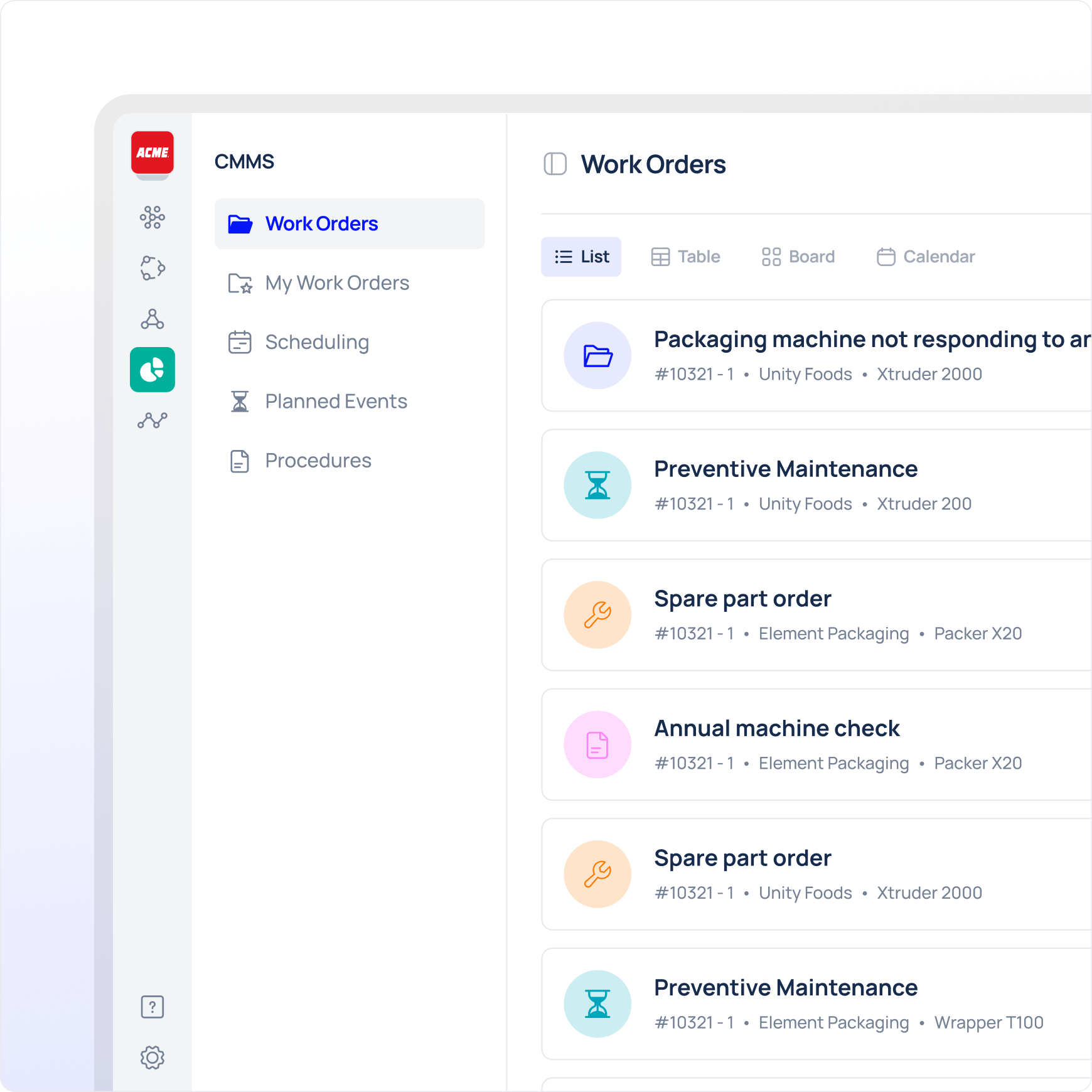 A Computerised Maintenance Management System (CMMS) is a software platform that centralises all maintenance-related information and processes within an organisation. It enables teams to create a structured database of all assets, schedule preventive maintenance, track work orders, manage spare parts inventory and generate reports to optimise asset performance and reduce costs.
