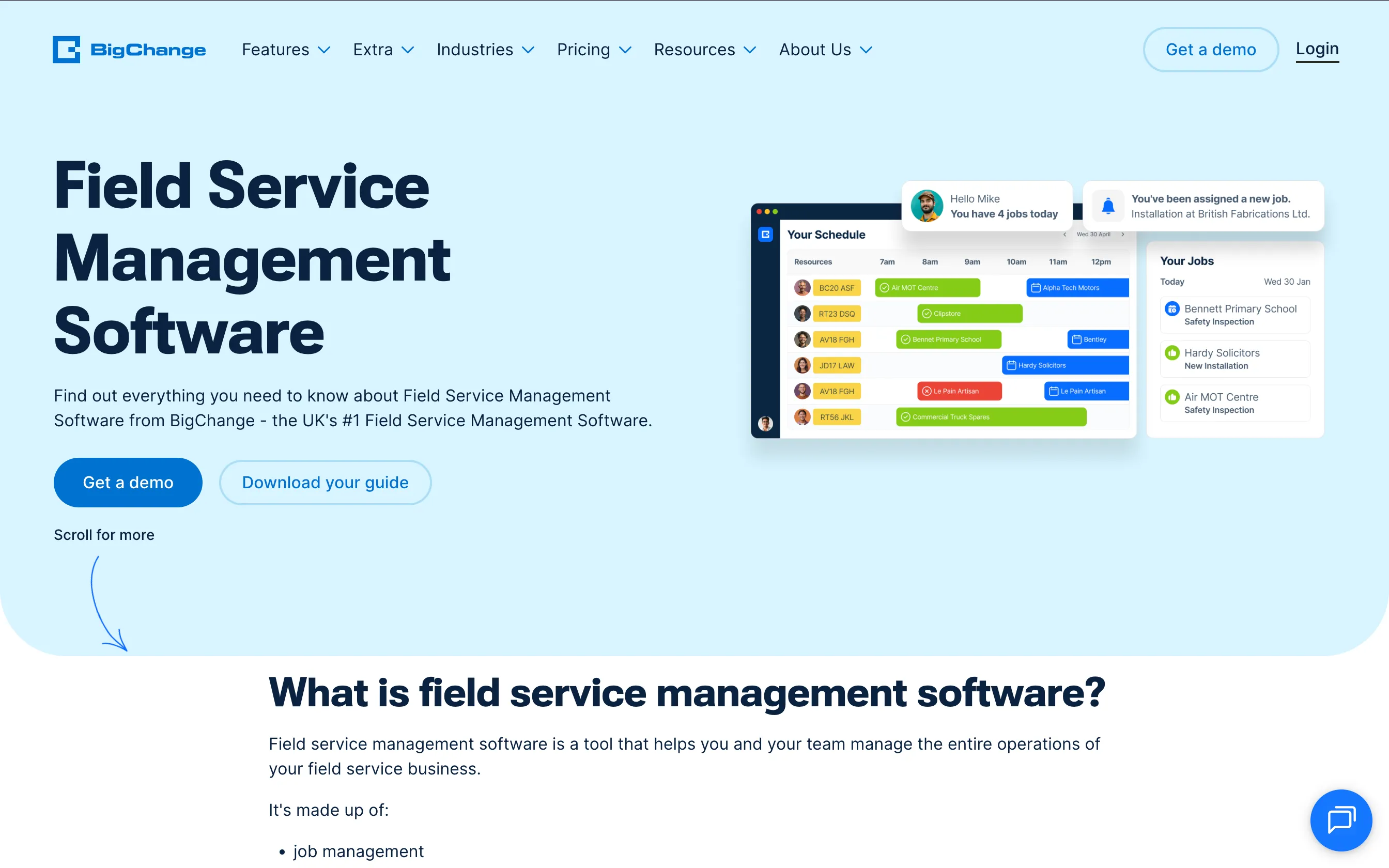 BigChange is best for field teams with fleets. It combines job scheduling with vehicle tracking and reporting. Great UX and local support in Europe make it appealing, even if AI capabilities are basic.