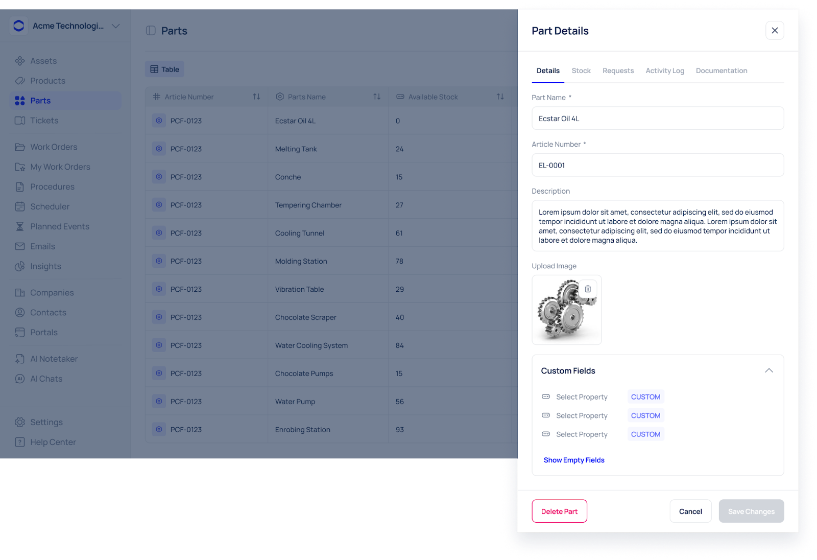 • Asset Type: Clearly categorise your assets. For instance, machinery could be divided into production machines, forklifts, and other heavy equipment.