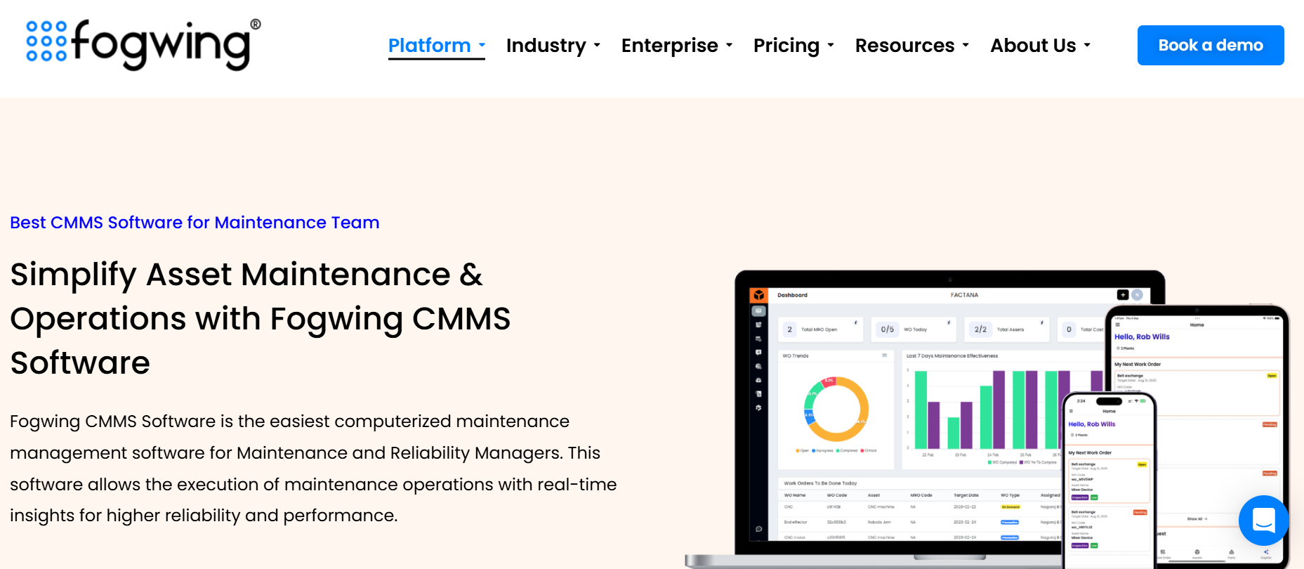 Fogwing offers an economical path to combine CMMS workflows with sensor telemetry and AI alerts. Public pricing shows a low entry point, making it attractive to cost-sensitive mid-market manufacturers experimenting with predictive features.