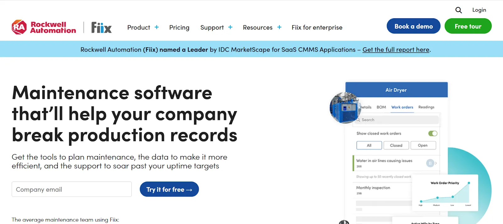 Fiix is an AI-powered CMMS platform that helps maintenance teams structure work order processing and manage company assets. Its open ecosystem and integrations support manufacturing and facility teams to leverage data for smarter decisions.
