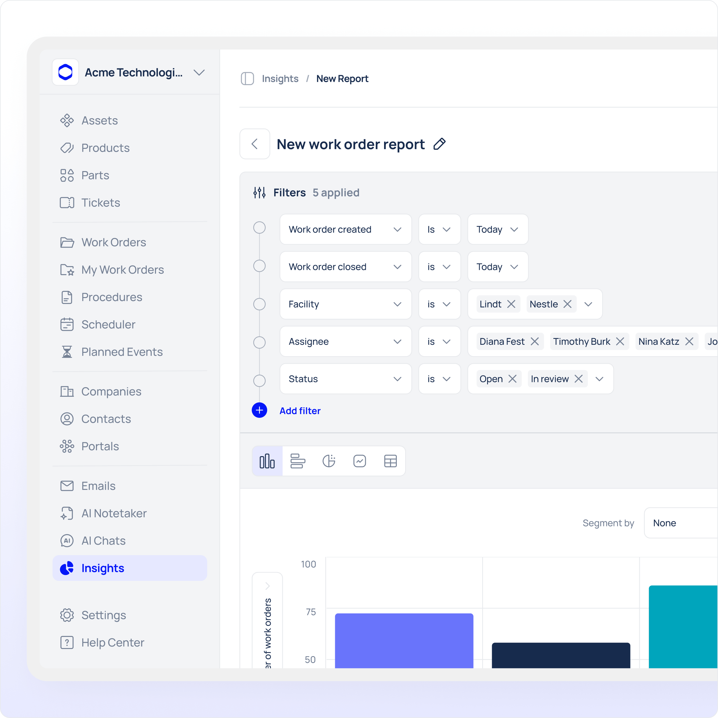 Turn field data into clear actions with dashboards, alerts, and drill downs that guide the next move.