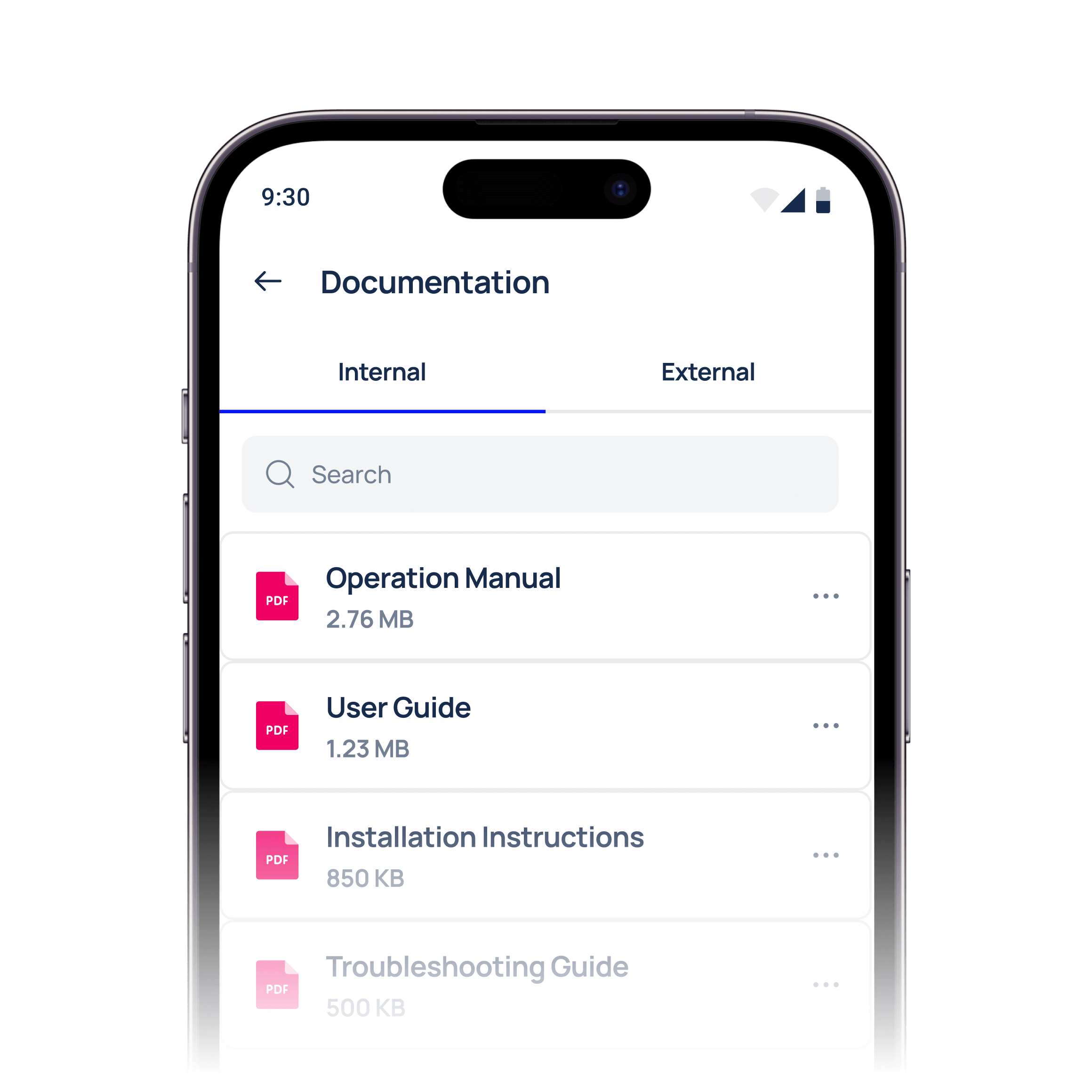 View manuals, SOPs, diagrams, and more. Attach files to assets or tasks. Access everything offline with auto-sync
