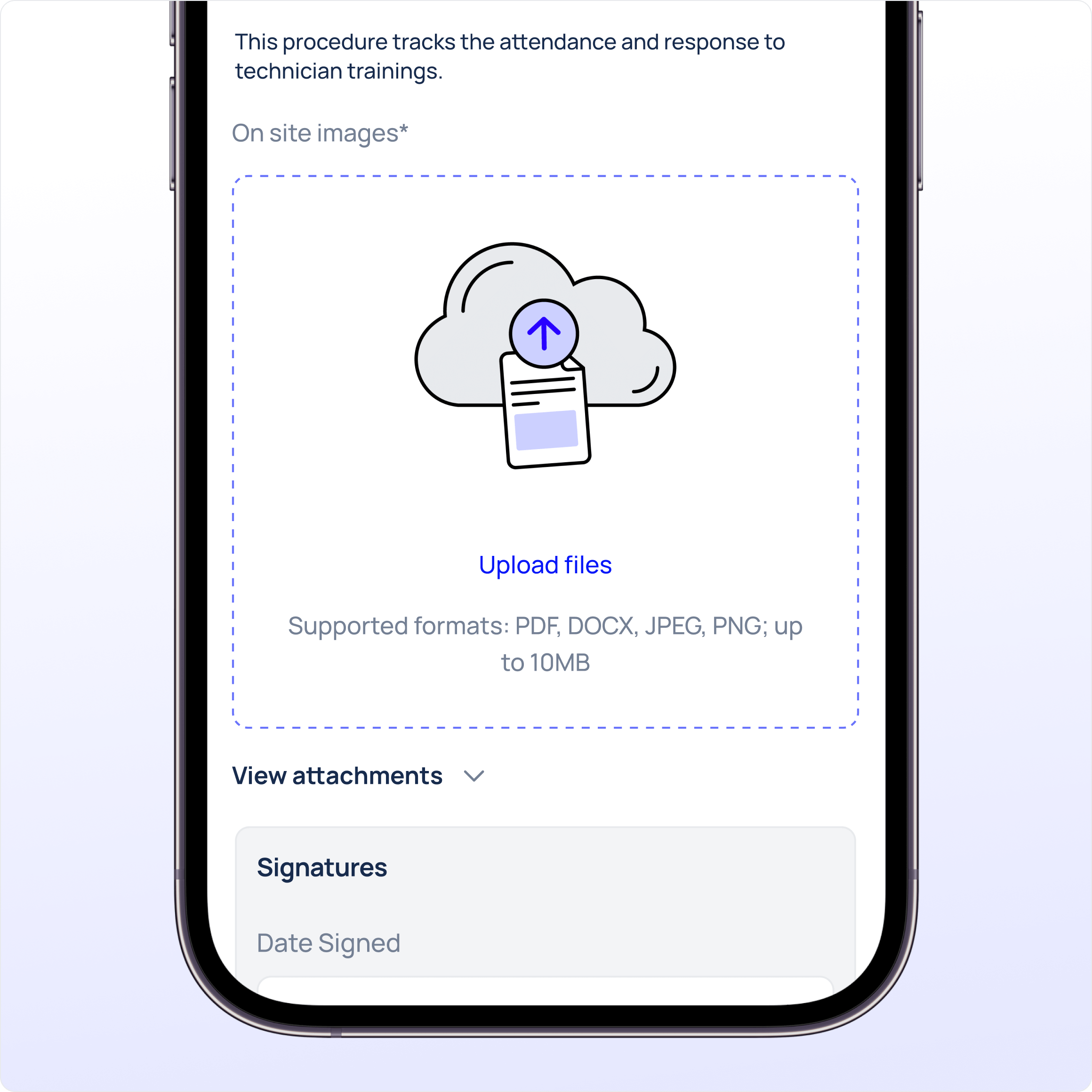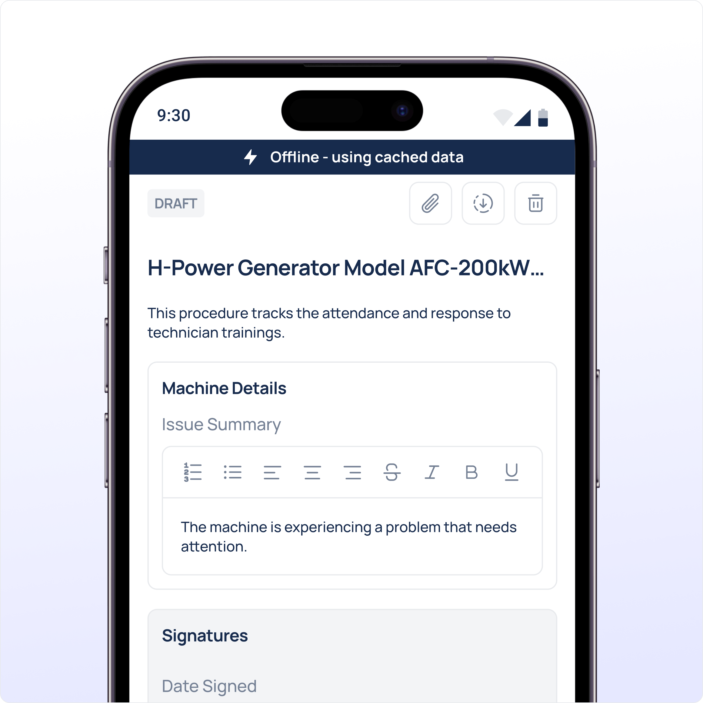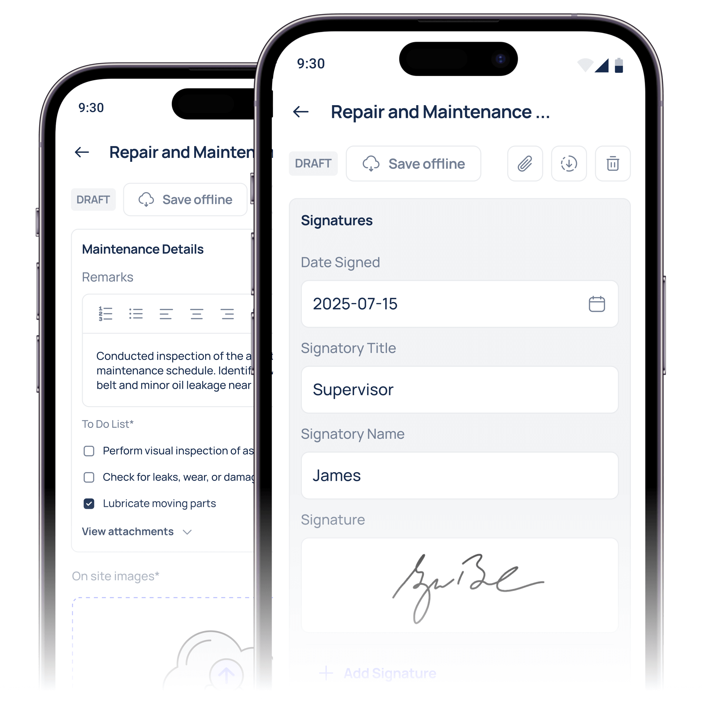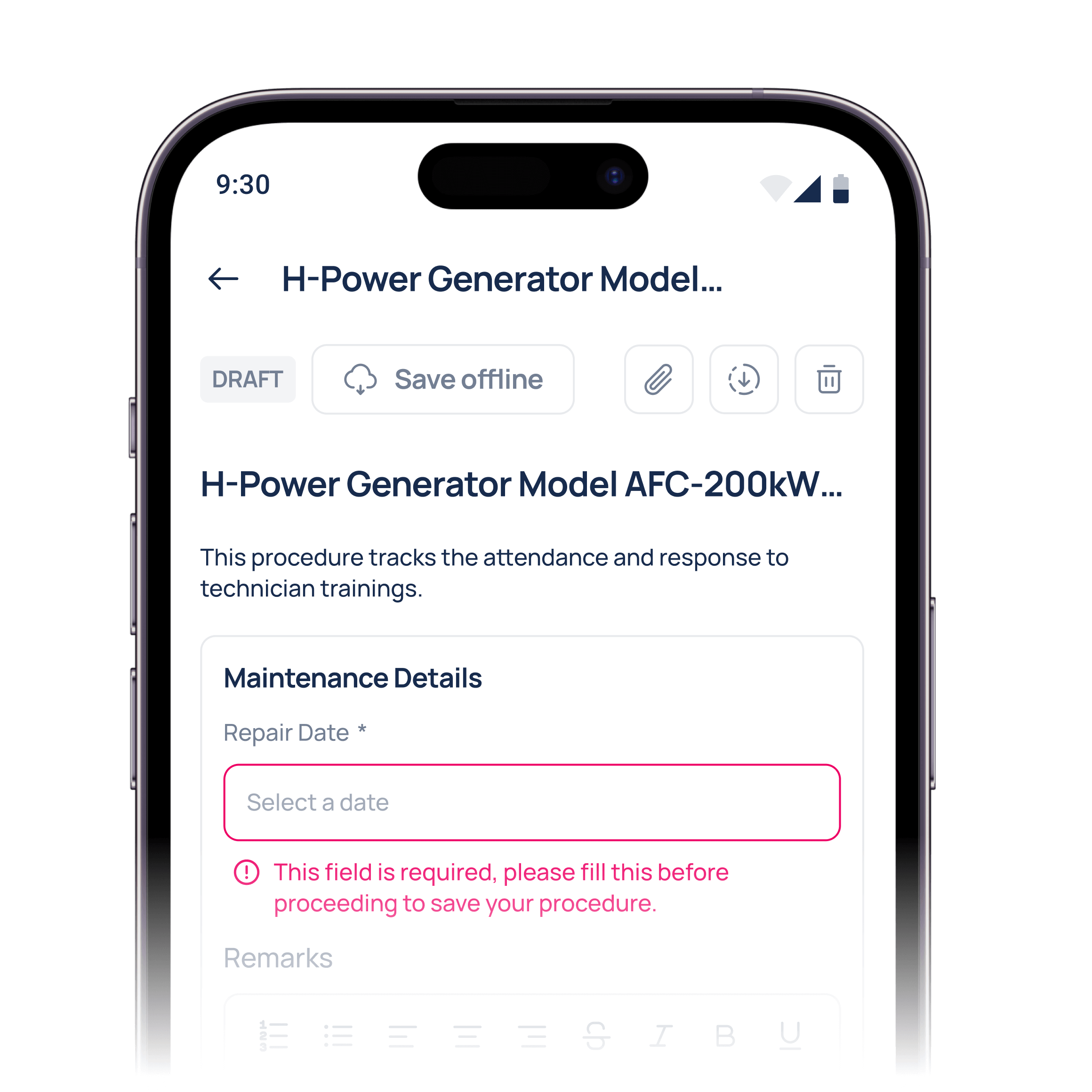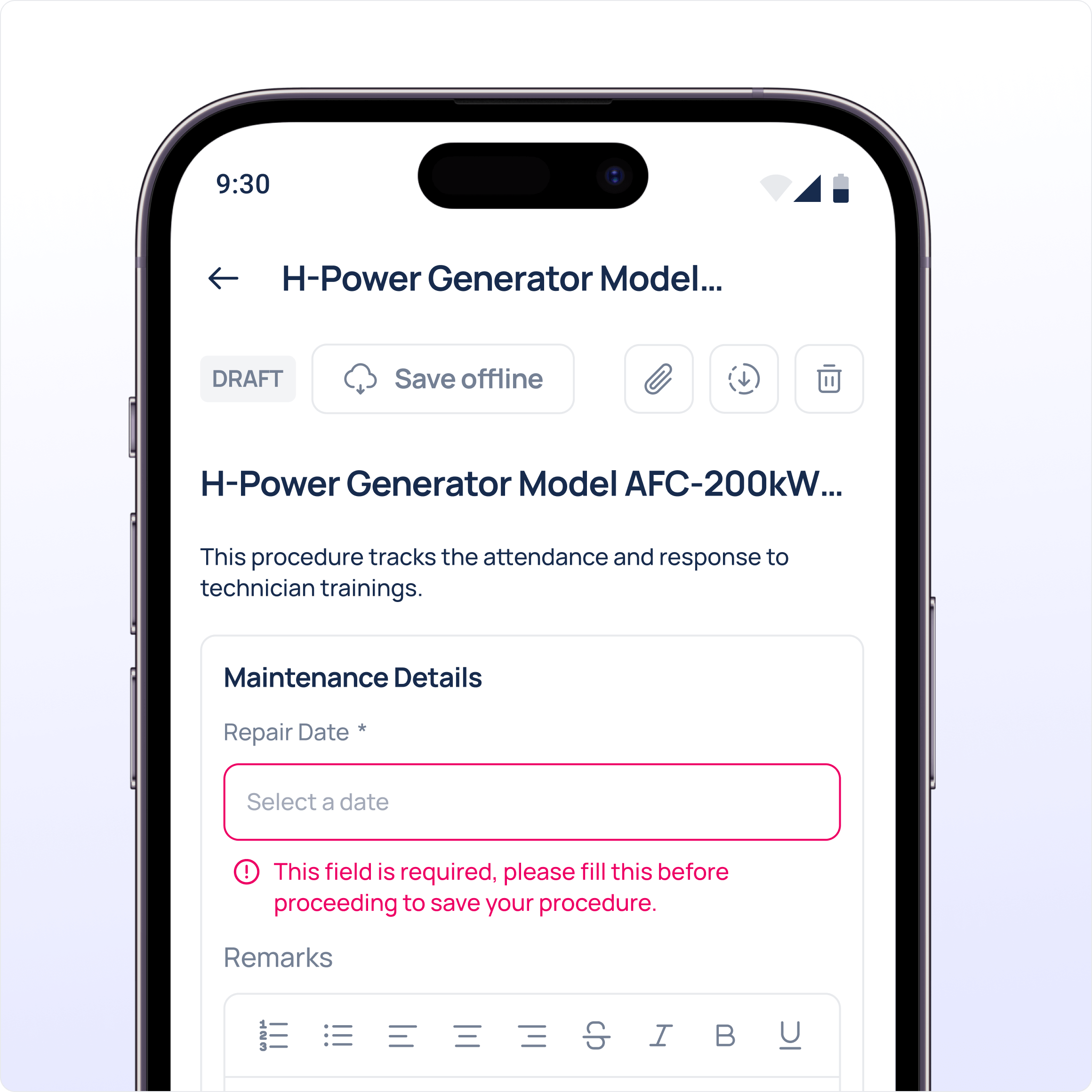Required fields and custom workflows guarantee that every inspection or safety step is documented